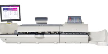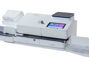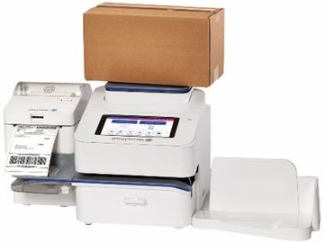 Designed to handle weekly mail volumes and office shipping in an easy-to-use device with semi-automatic mail feeder and optional label printer.
